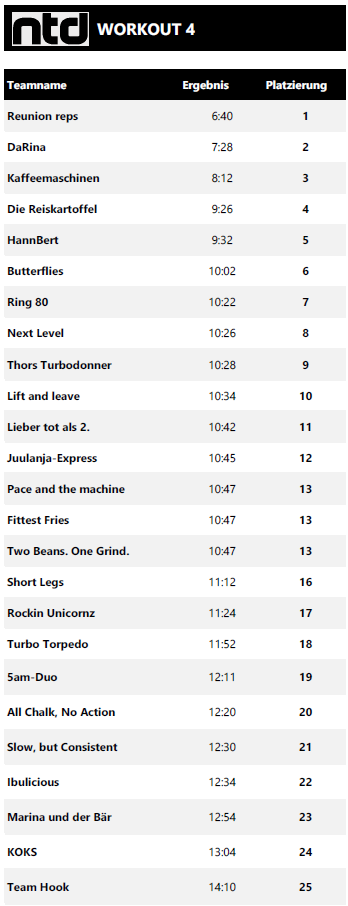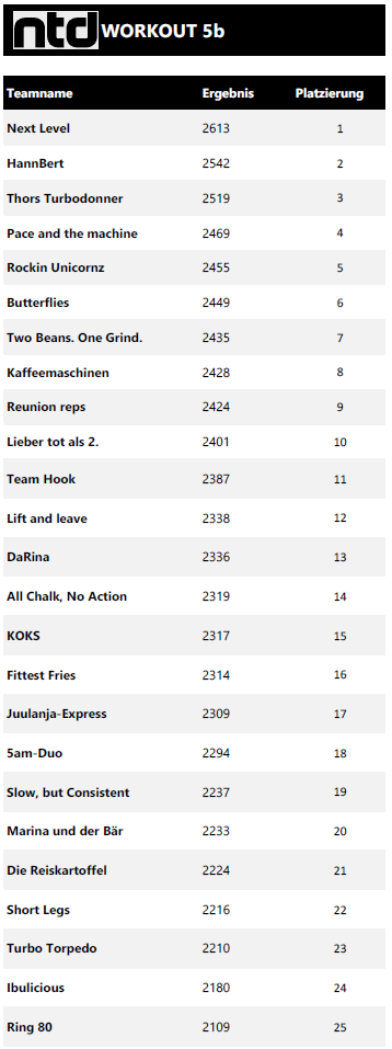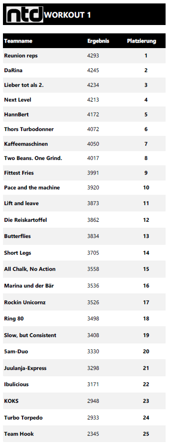 Intermediate - Scoreboard Gesamtranking - Final Intermediate Rankings - Sonntag, 17.08.2025 Workout 4 Workout 5a Workout 5b Intermediate Rankings - Samstag, 16.08.2025 Workout 1 Workout 2 Workout 3 Gib hier deine Überschrift ein